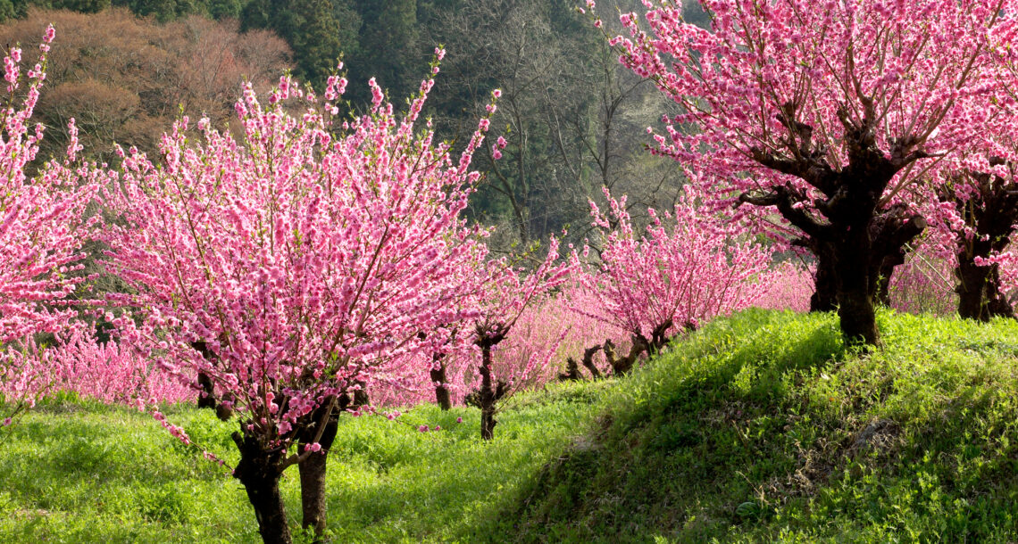 満開の桃の花
