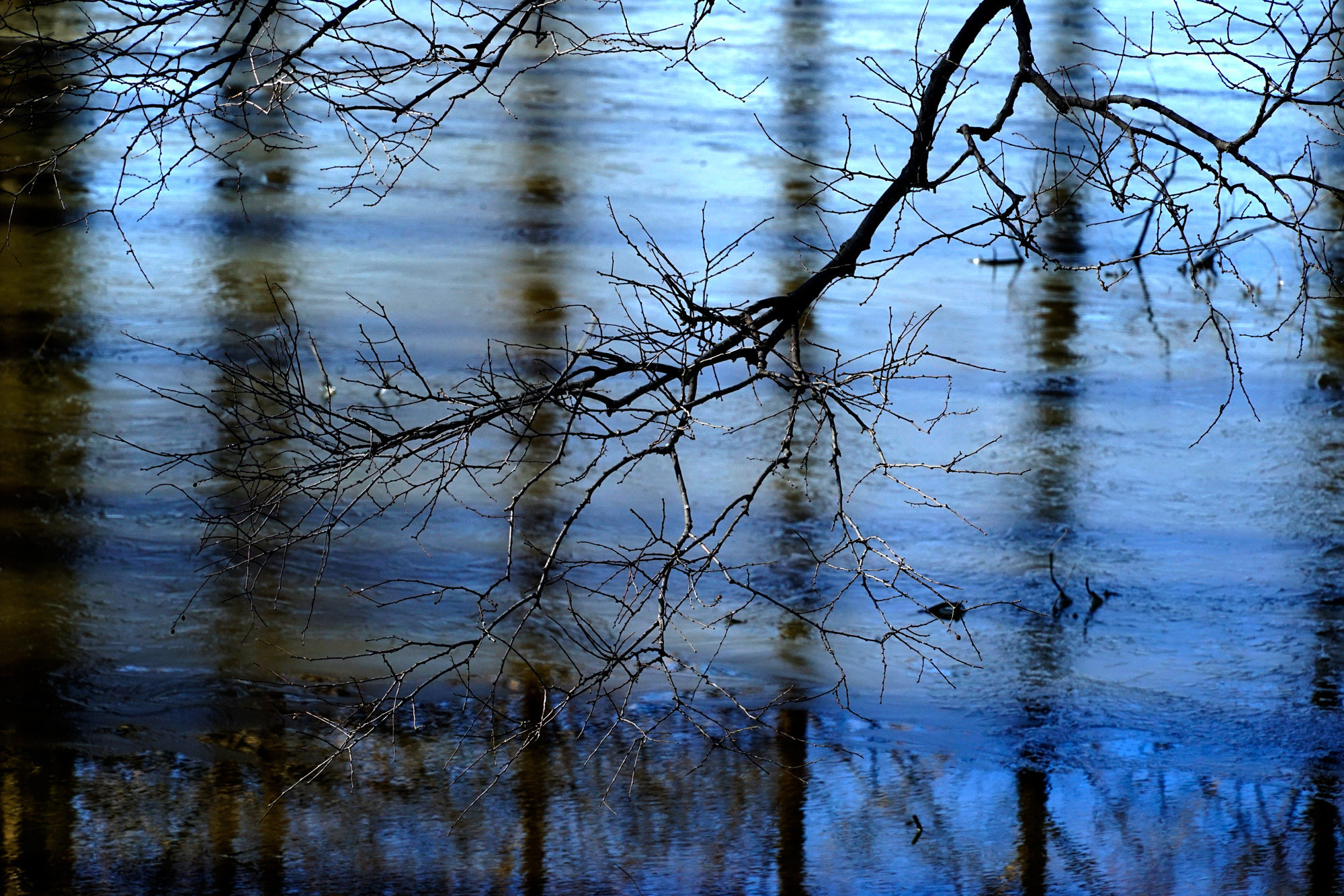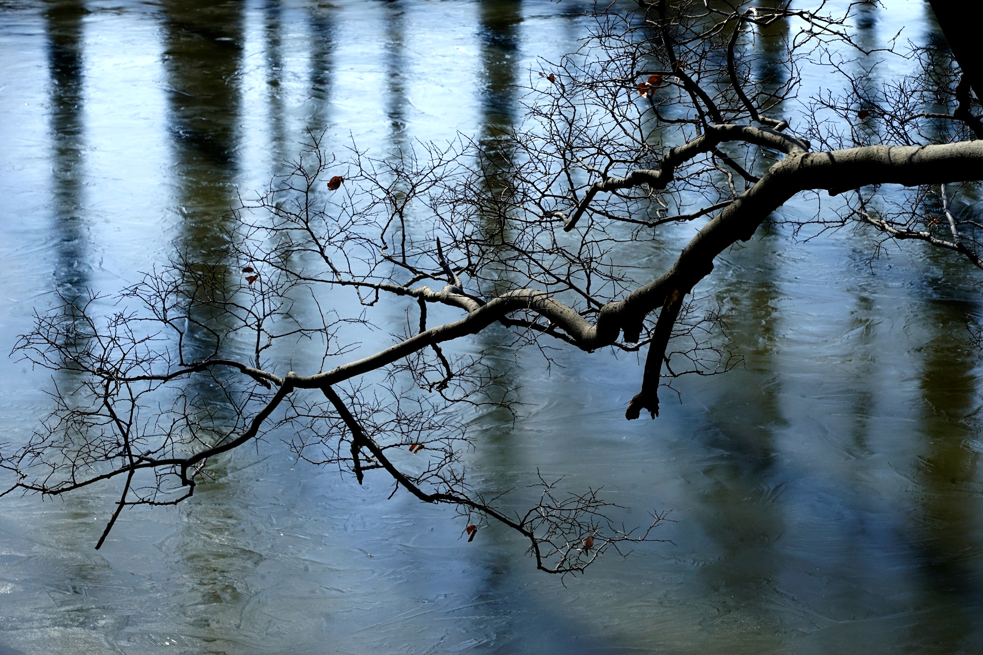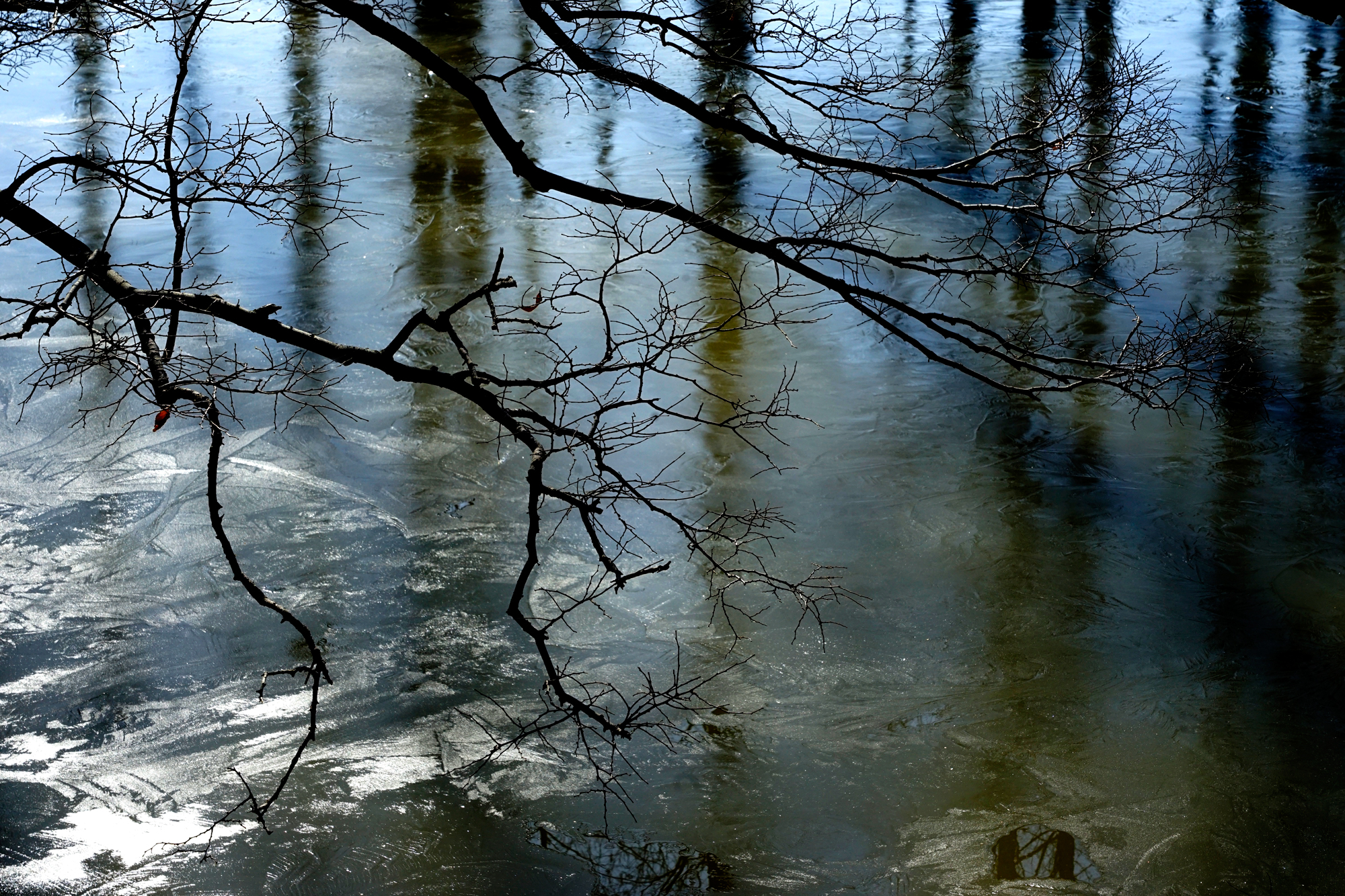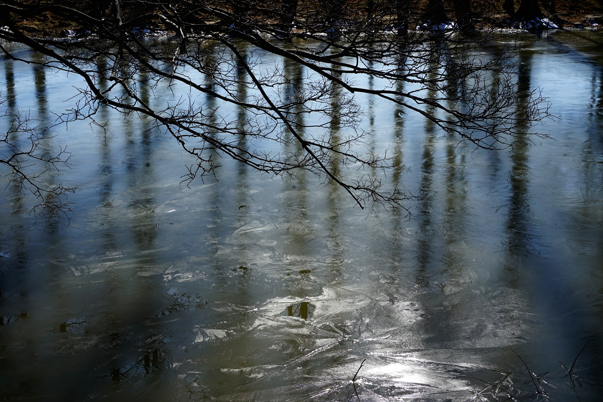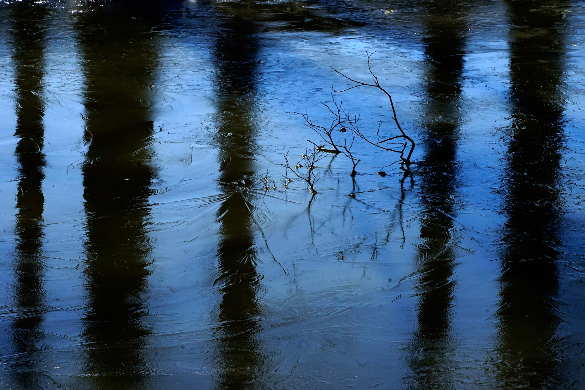 薄氷に映る森