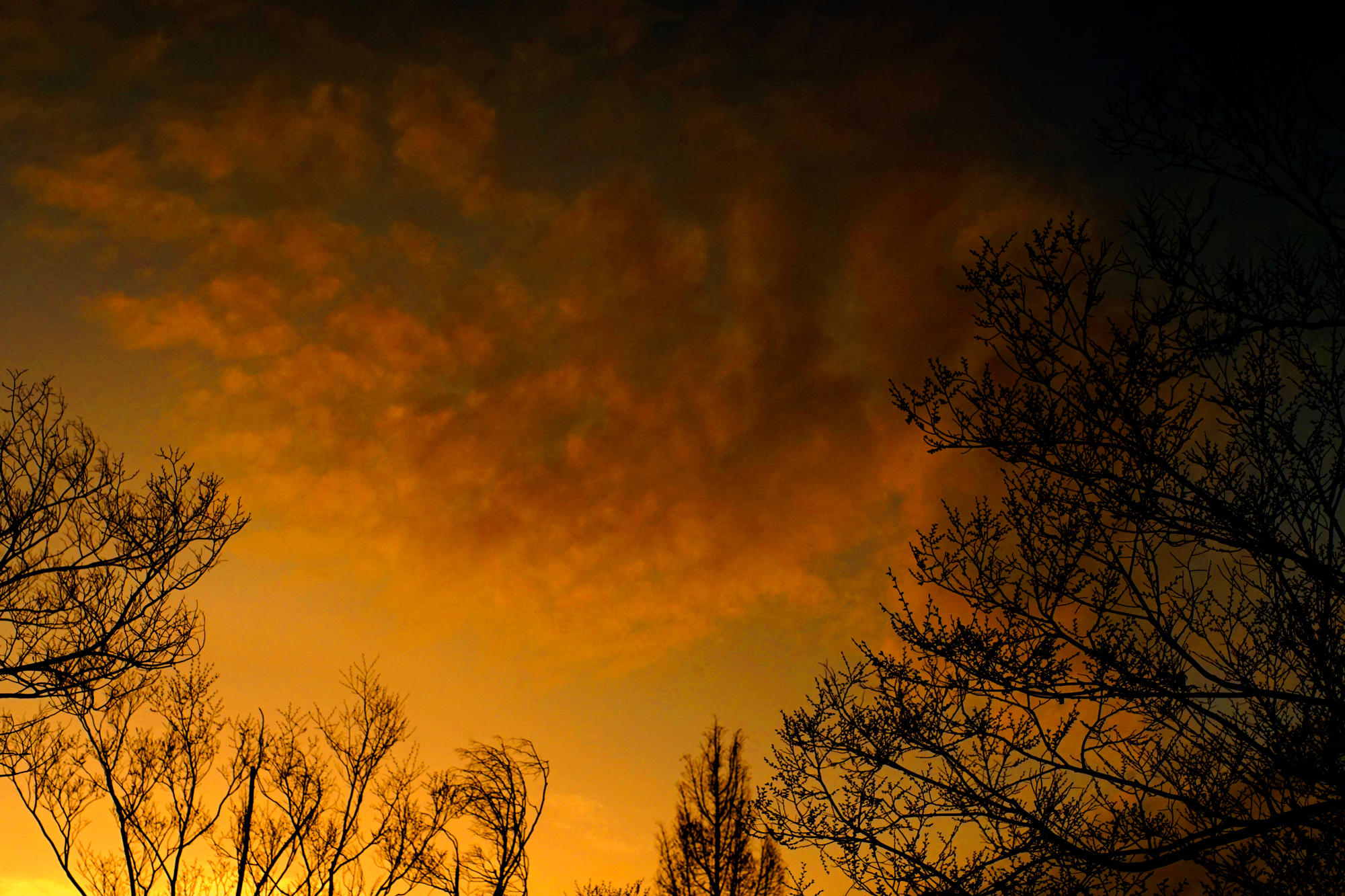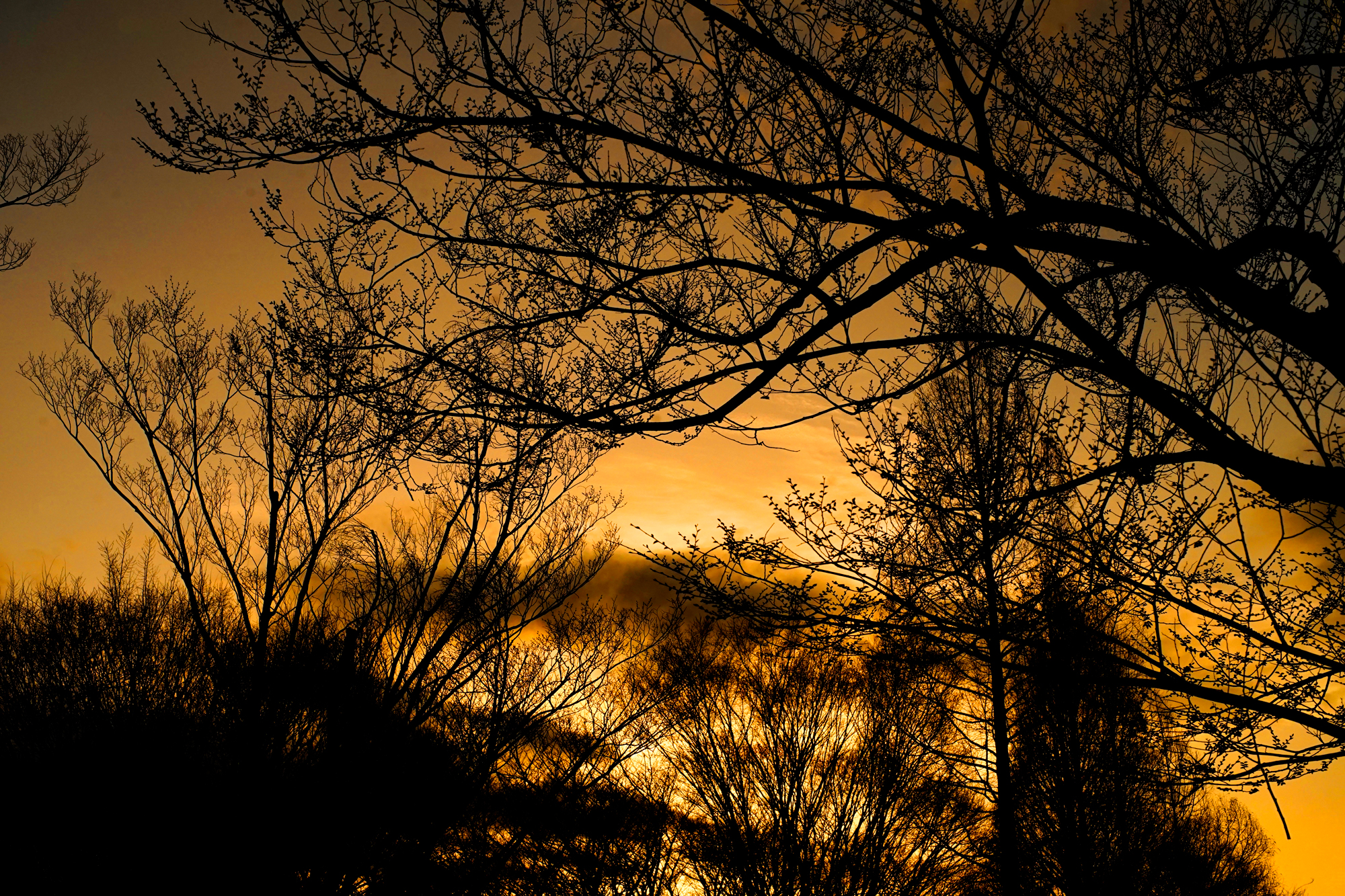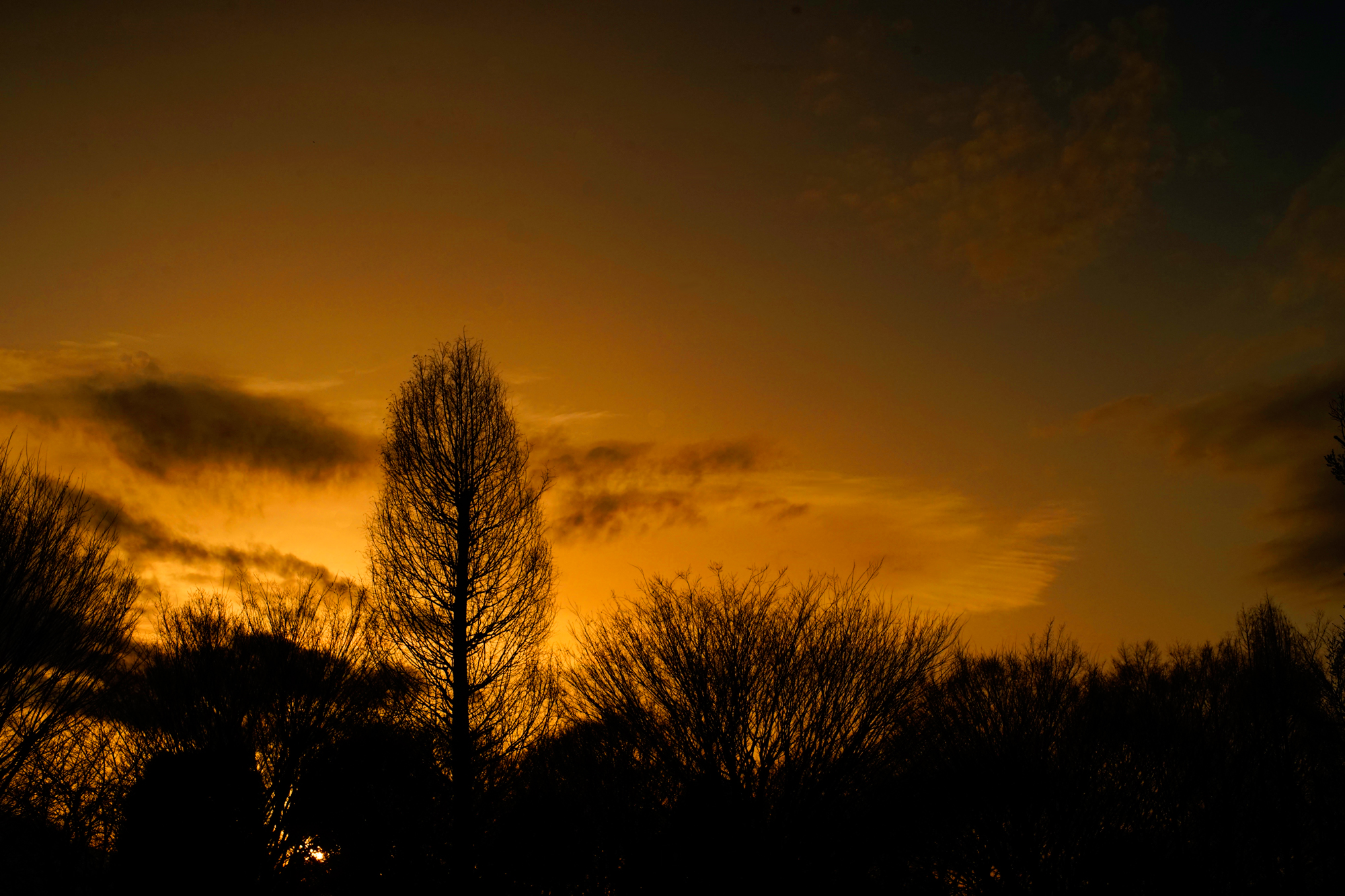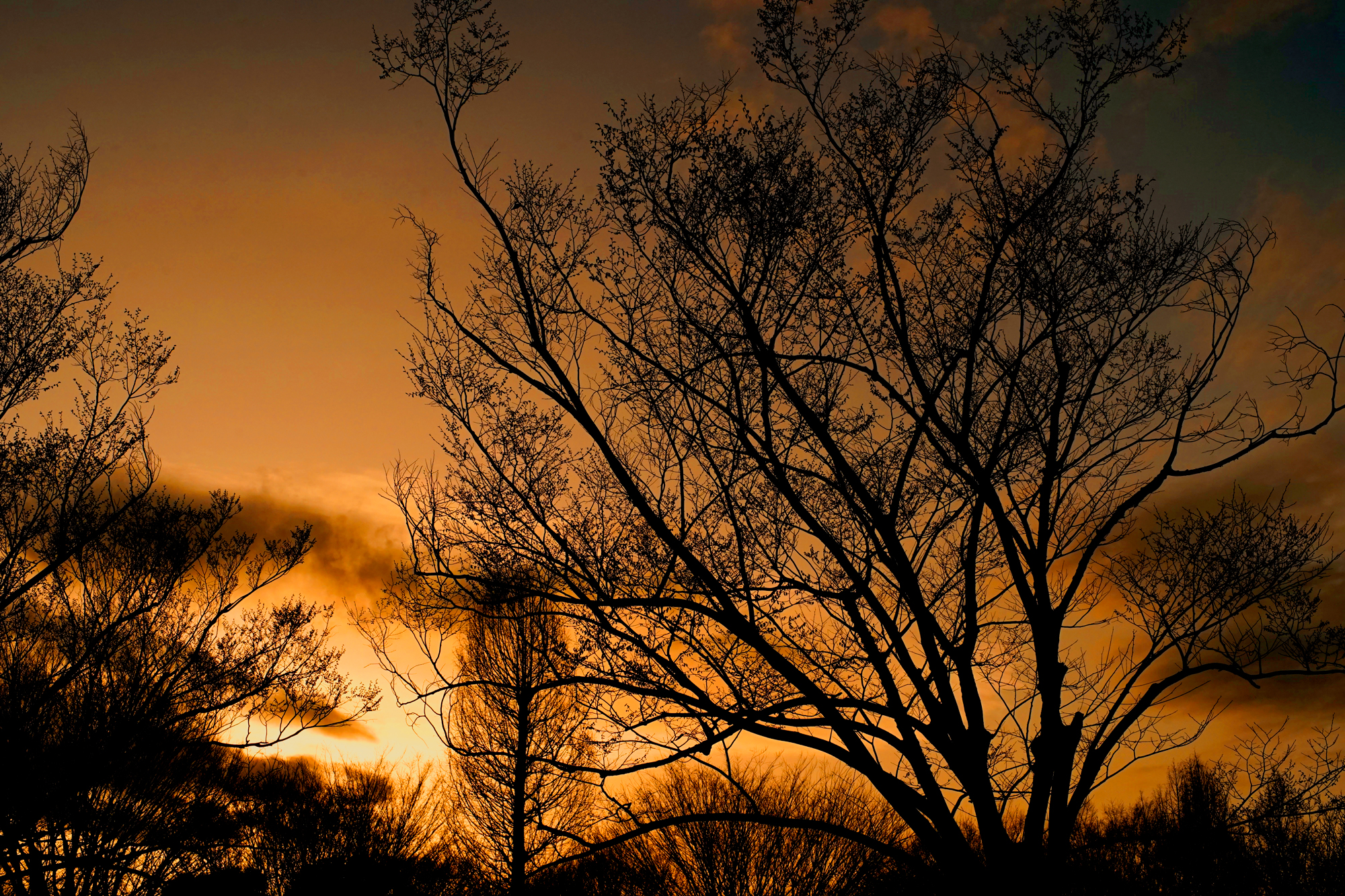 夕空に溶け込む木々