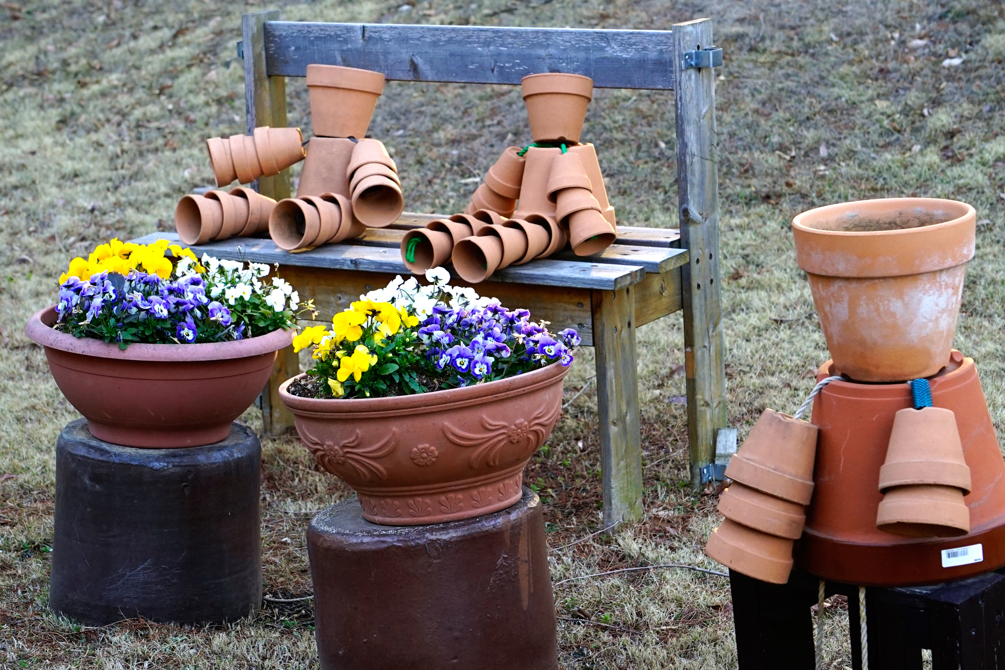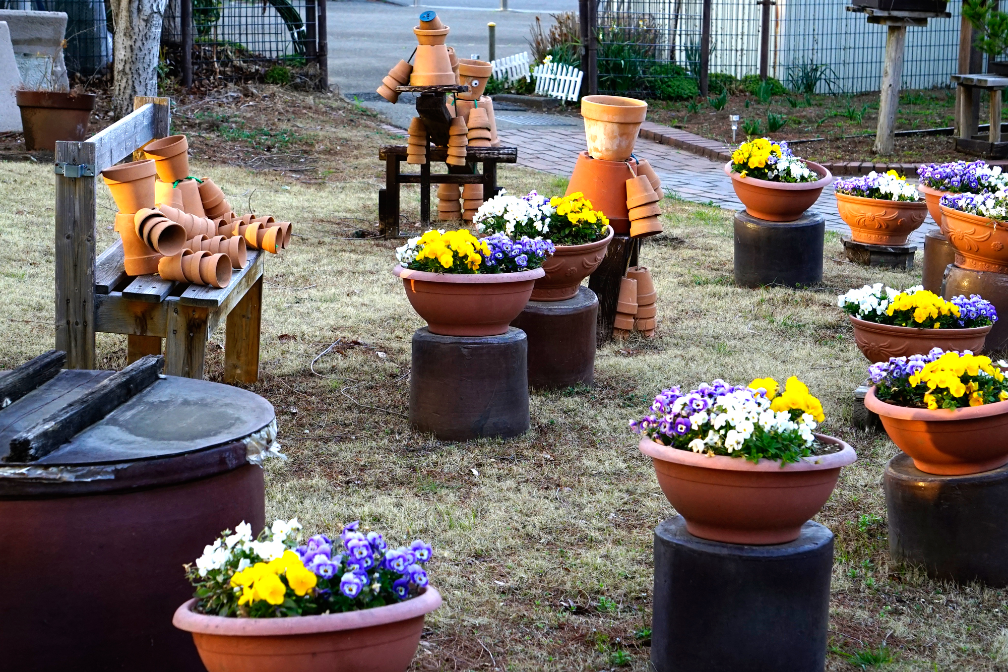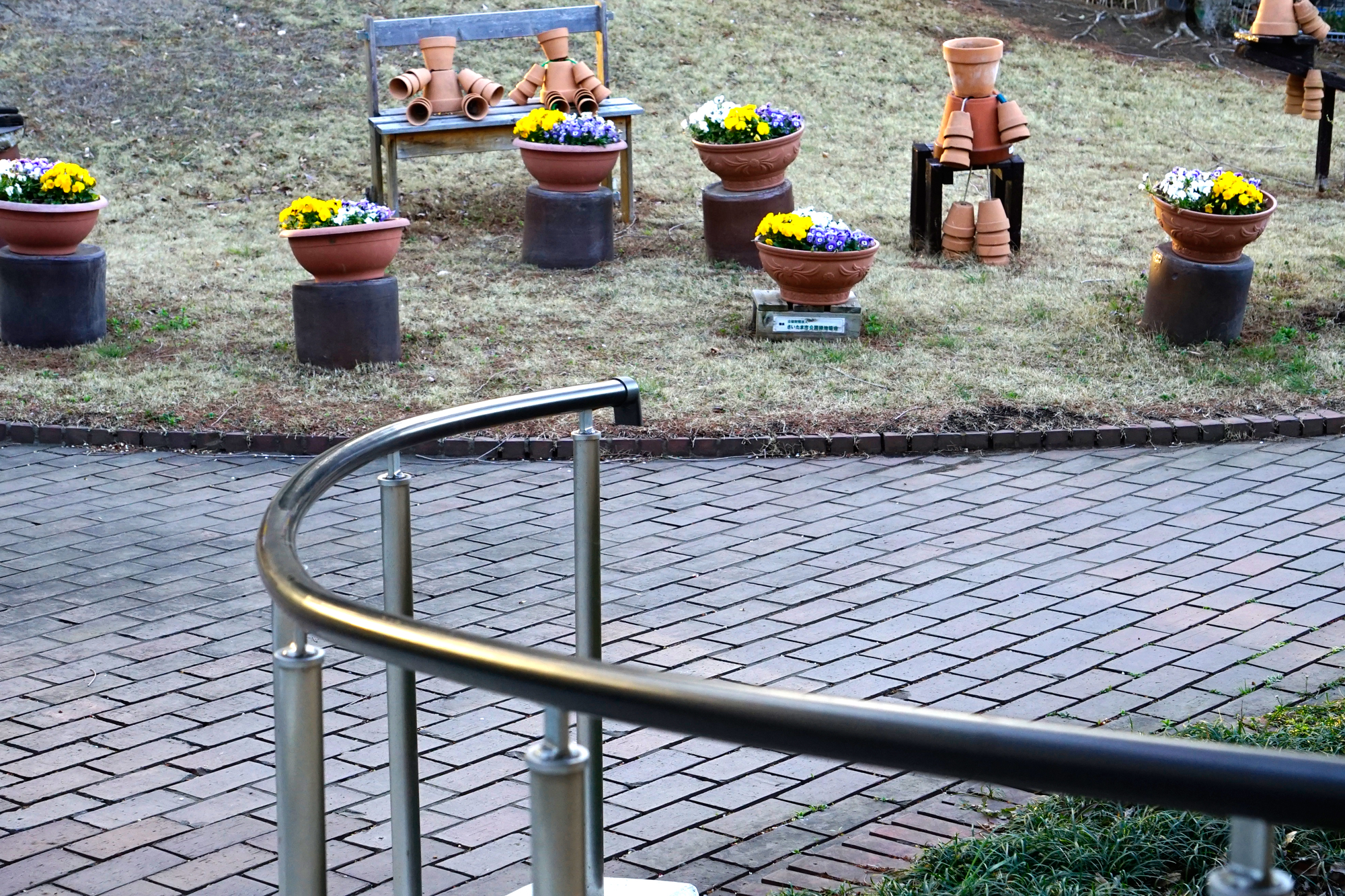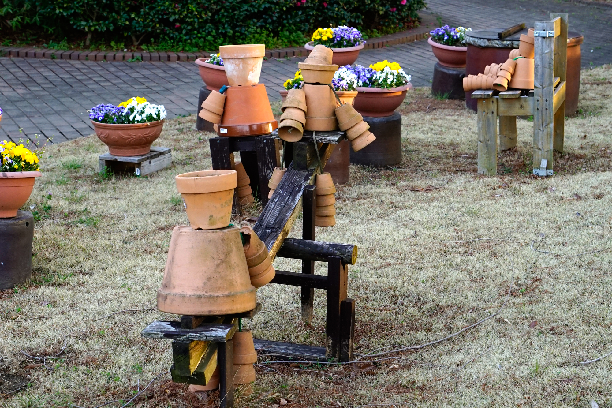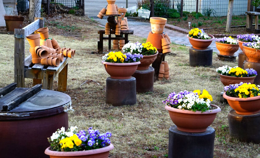 植木鉢家族が公園をほほえみの世界に