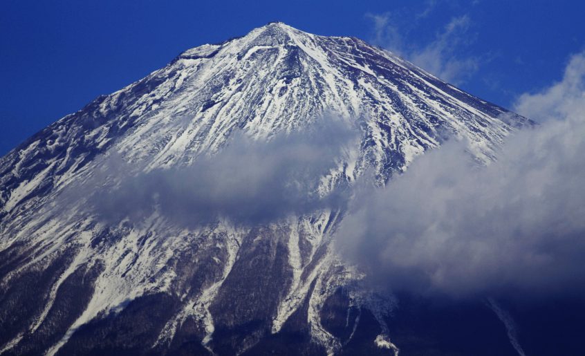 富士山の迫力に息をのむ。 雲が優しく包みます。