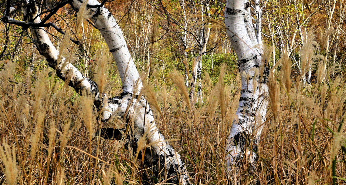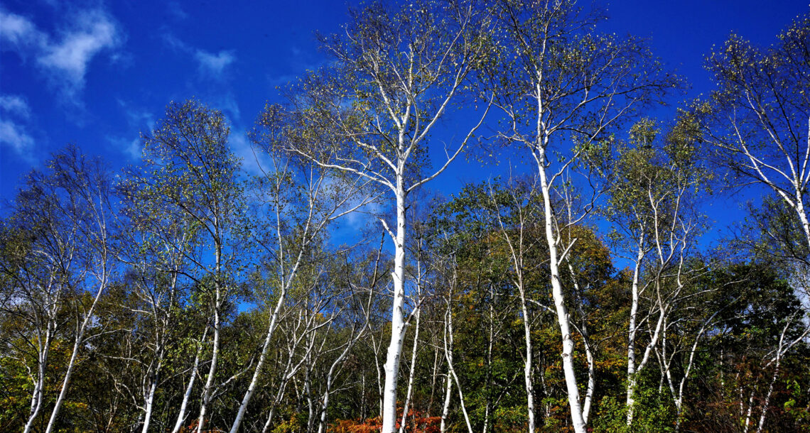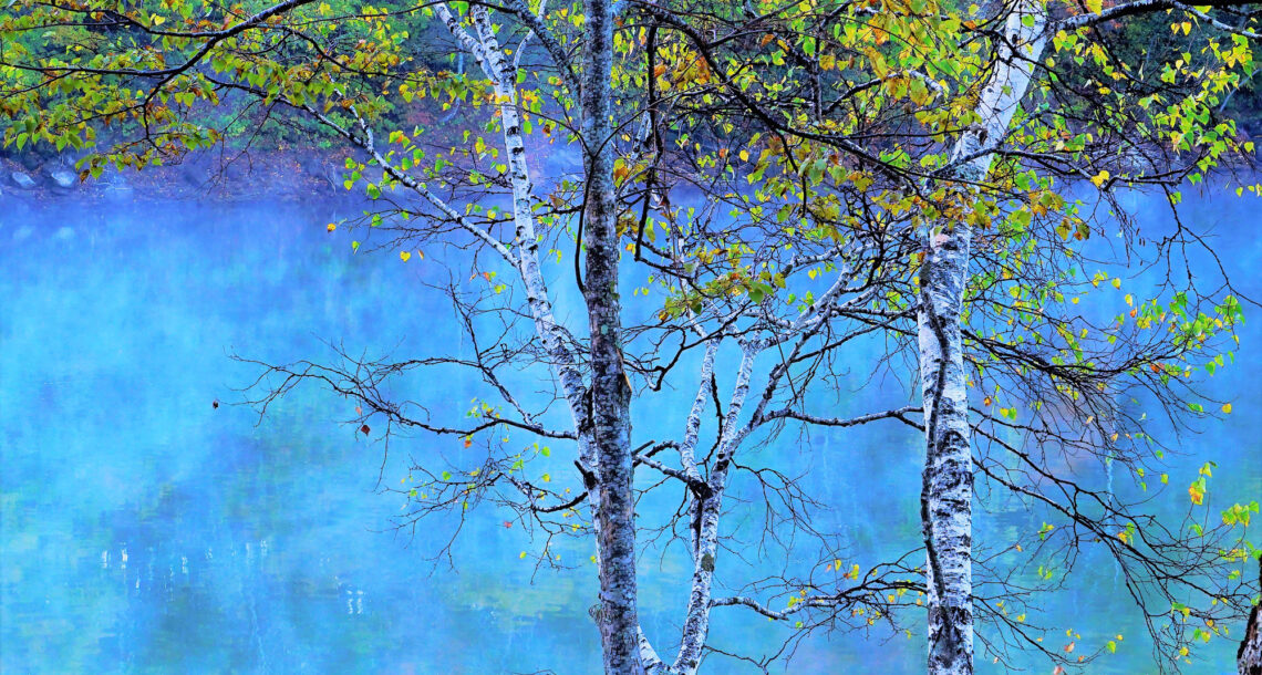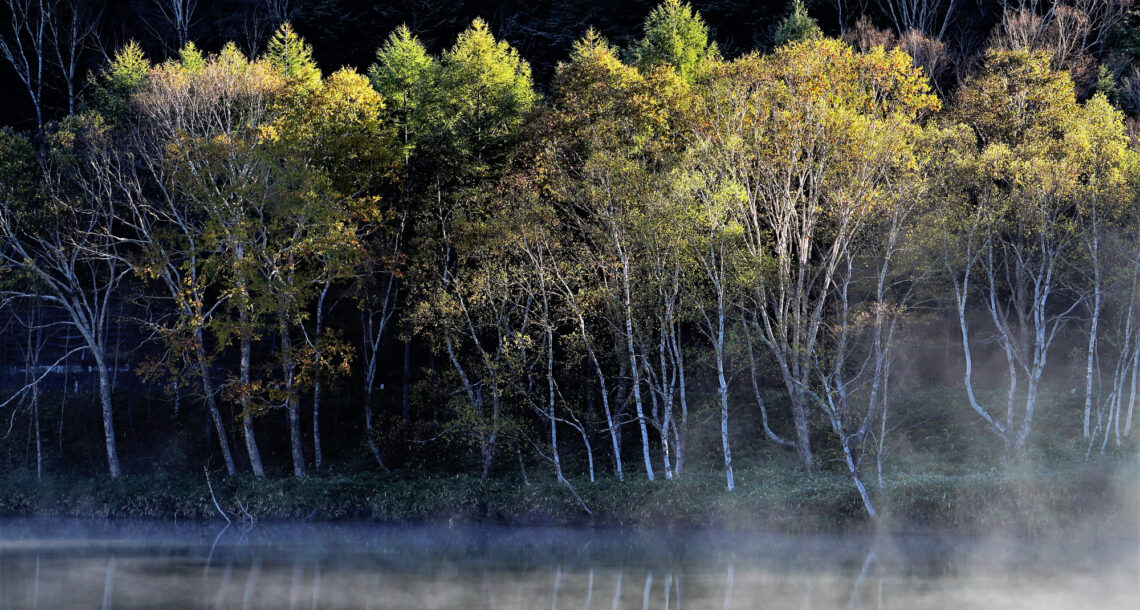 霧の白樺林