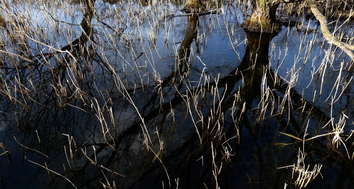 薄氷に映る森