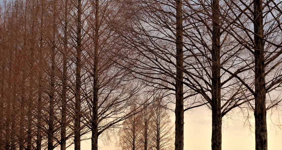 夜明けのカラ松林