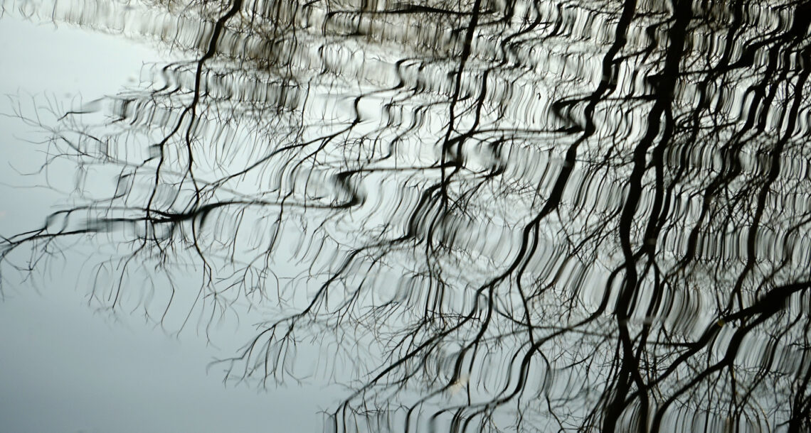 薄氷に映る森