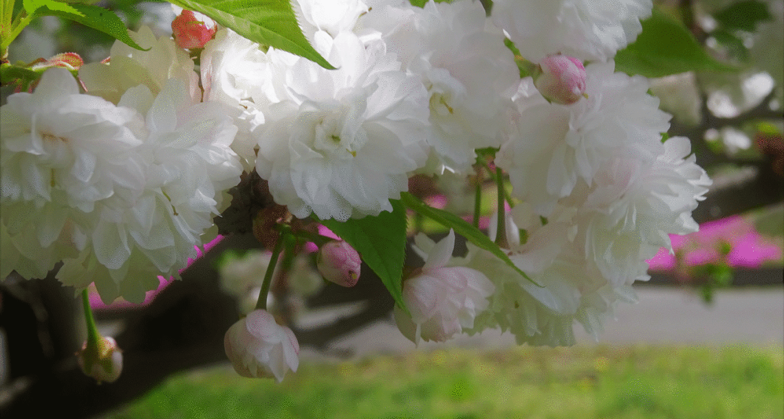 八重桜咲く小道