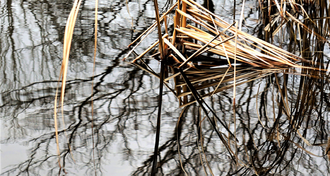 薄氷に映る森
