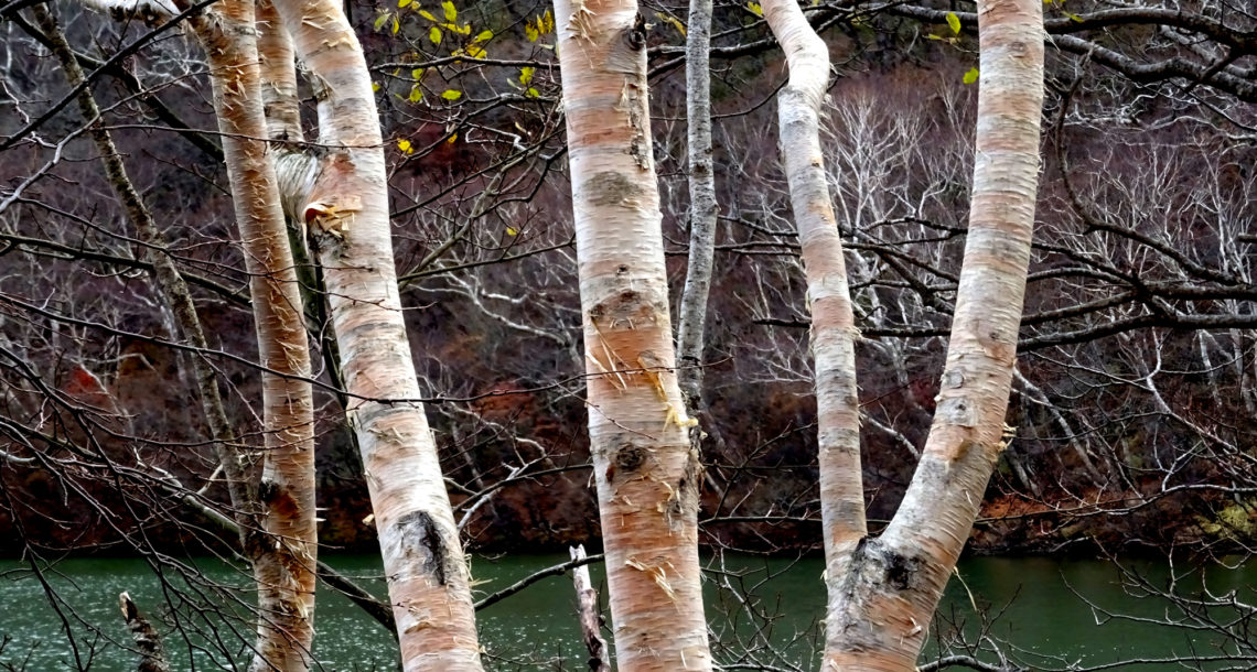 霧の白樺林
