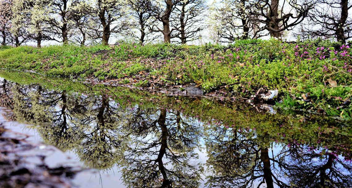 薄氷に映る森