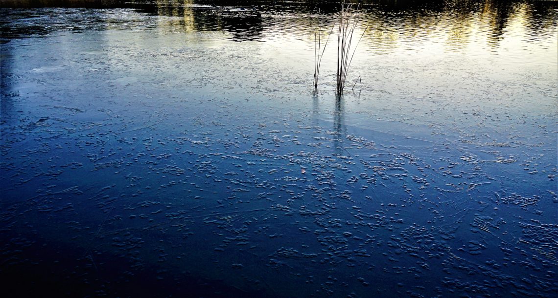 薄氷に映る森