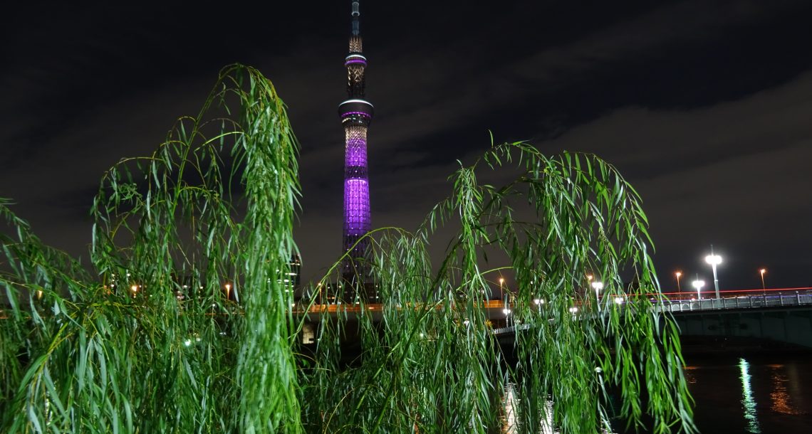 墨田川と柳とスカイツリー
